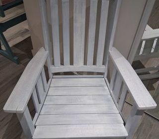 Rocking chair en bois dur poncé et repeint en patine bleu ciel