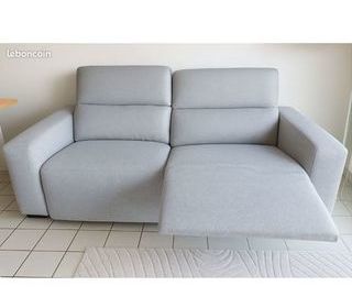 Je vends ce canapé relax électrique 2 places en tissu gris. - Type de produit : Canapé relax électrique 2 places - Matériau : Tissu gris - Dimensions : 2,10 m - Fonctionnalités : R