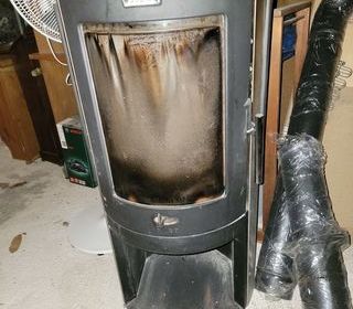 Poele à bois Godin 411106 noir avec sa tuyauterie hauteur 150cm, diamètre 50cm, foyer 55cm, tuyaux 150mm pour buches de 33cm Très lourd. A venir chercher à domicile à CONTES 063