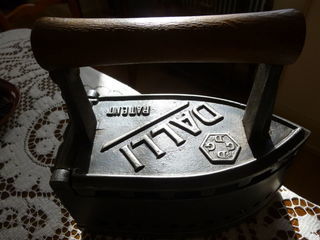 MAGNIFIQUE FER A REPASSER A BRAISE ET EN FONTE . MARQUE : DALLI . MODELE RARE . VERS 1900 . BREVETE . LONGUEUR : 20cm . LARGEUR : 10,5cm . HAUTEUR : 18cm . SUR LE C