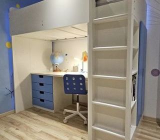 Je recherche lit mezzanine en bois avec bureau dans le style de la photo