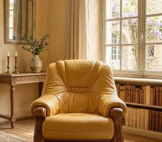 fauteuil cuir doré Louis Philippe années 80/90 excellent état tiroir sous assise très confortable vendu cause santé