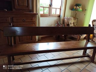 Vend en très bon état banquette en châtaignier massif de 2m de long avec dossier convient très bien dans une entré avant de se déchausser pour rentré ,un banc de jardin ou à coté d