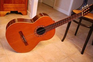 GUITARE " CUENCA 30 " DANS SA HOUSSE DE TRANSPORT D'ORIGINE . GUITARE de 1982 (voir photo de l'étiquette à l'intérieur de la caisse) en PARFAIT ETAT JAM