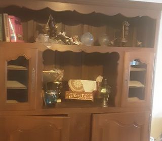 Meuble haut 2m x1,65 profond 55cms prévu pour tele Dessus niche puis Emplacement tele ou autre avec p portes vitrees sur les cotes Dessous 2 grandes portes rangemen