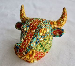 TËTE DE " TORO " 3 D Façon Antoni GAUDI WIMA GIFTS COLLECTION Résine peinte à la main ETAT NEUF ENCORE DANS SA BOÎTE DIMENSIONS : 17 cm X 17 cm X 9