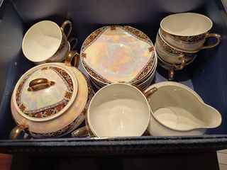 Ensemble en porcelaine de Limoges de 8 sous tasse 8 tasses un peu aller un sucrier