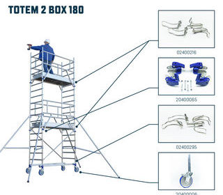 Je mes a vendre cette échafaudage TOTEM TUBESCA 180 en aluminium avec 4 roues réglable, il et en très bon état, avec 2 plateaux soit une hauteur du dernier plateau a 6 mètres pou