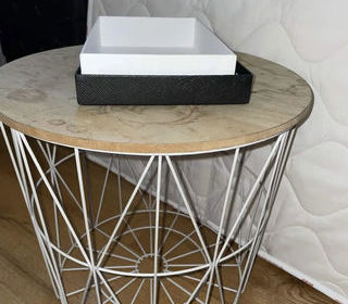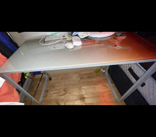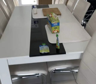 Table avec quelques petites rayures et il y a une marque a cause de mon micro-ondes chaises blanche à donner il y'en a 5 mais elles sont abîmer