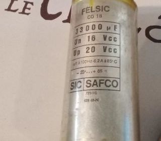 CAPACITE CHIMIQUE 33OO0 MF 16V démontée d'une alimentation de puissance ancienne sous 12v serrage par vis et cosse; plastique un peu élimé Voltage de pointe à 2OV Pou