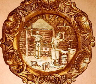 Tableau Assiette Assiette décorative sculpté dans le bois Représentant des forgerons Ø 24 cm En très bon état Prix : 5€ À récupérer sur place (Illkirch)
