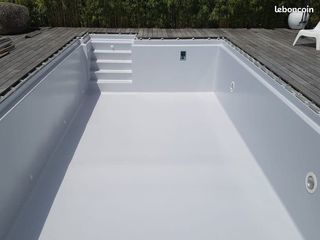 Description peinture spéciale piscine coque polyester en bleu ou en blanc en 2 composent a mélange sec en 2 heur a tendre 10 a 12 jour pour la remplir la piscine 1 pot de peinture