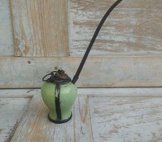 Ancienne Petite Pipe à Eau Céramique Céladon Chine Chinese Époque exacte à déterminer Hauteur totale 20cm, hauteur de la céramique 7,5cm, largeur 6cm. Bon état