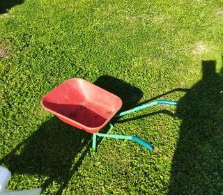 A vendre brouette enfant en métal rouge et vert