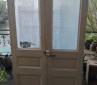 Anciennes Portes Fenêtres Verre Mousseline Hauteur 200cm, largeur 58cm. (Dimensions pour une porte) A rénover, un verre cassé en partie.