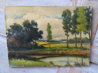 Tableau Paysage de Campagne Signé Georges Castaing Huile sur toile format 33cm x 24cm. Bon état