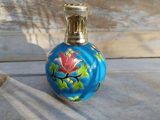 Ancienne Lampe Berger Émaux de Longwy Hauteur 15,5cm, diamètre 10cm. État : Bon état, un petit choc sur le capuchon