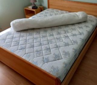 Armoire originale qui propose, à gauche, 1 penderie et 2 étagères, et à droite 4 étagères et 1 coin coiffeuse, avec tablette et miroir ! Il y a également un grand miroir à l'intéri