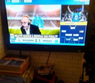 une grande télé plasma couleur marque LG 200 watts télécommand double vitrage avec avec les boutons marque avec la rallongee