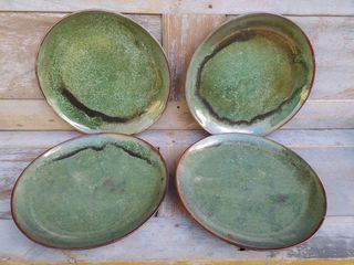 4 Assiettes Grès Émaillé Vert Porterie Artisanale Diamètre 26,5cm Très bon état