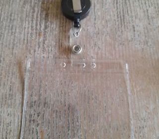 Lot de 2 porte-badge, l'un blanc et l'autre bleu marine, pochette transparente sur le devant pour mettre un badge ou une étiquette nominative, attache par petite pince argentée,