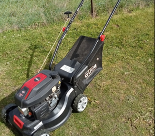 Petite tondeuse à gazon poussée, légère, pour 500 m2 + ou - bonne état peu servi 41 cm largeur de coupe , 3 hauteurs réglages, carburant 98, consomme peu.Prix à débattre.