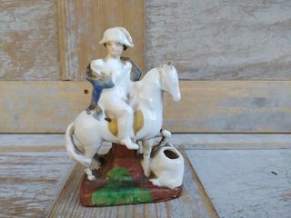 Ancien Encrier en Porcelaine Napoléon Bonaparte à Cheval Marque à identifier Hauteur 13cm, longueur 9cm, largeur 5cm. État : Accidentée, a été recollée