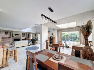 Elégante grande table de repas en acacia massif vernis Marque Bois&Chiffons ligne "Florence" (déco bois rainuré en relief) Modulable avec 2 rallonges L. 40 cm Capacité 8 a 1