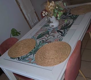 Bonjour, Je vends une table à manger avec ses 4 chaises en très bon état.