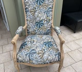 Tissus Couleur Marron En très bon état (peu servi) Repose pied escamotable Très confortable A prendre sur place A essayer sur place avant éventuel achat Dimensions: Hauteur ~ 100