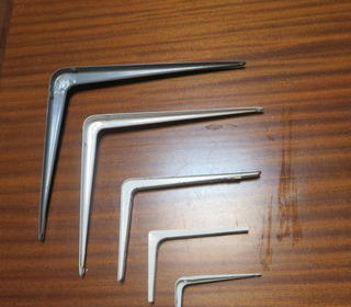 SUPPORTS POUR RAYONNAGES EN ACIER LAQUE BLANC A CHOISIR - MONTANTS DE DIFFERENTES LONGUEURS 2 € LE M - CONSOLES : - de 50 cm prix 1.20 € - de 40 cm prix 1 € - de 30 cm prix 0.80