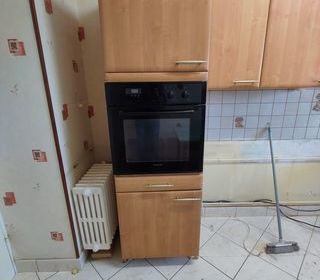 Un ensemble Colonne four Bois couleur miel Hauteur 206 cms dont pieds de 10 cms avec four Thermor pyrolyse TBE..la porte vitrée du four est à refixer 70 euros l'ensemble