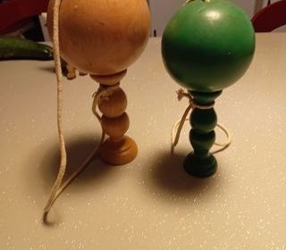 Vends 2 bilboquets en bois, état neuf Le vert 18cms Le naturel 20cms