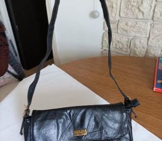 Sac à main petite bandoulière 80 cm réglable sur les côtés, possibilité de rajouter des trous . Longueur 29 cm , Hauteur utile 17 cm , largeur 7 cm . Marque Beaugency . 4 Poches i