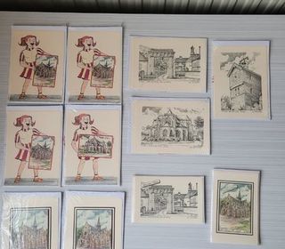 Cartes postales imprimées avec enveloppes blanche sous blister de Bar-sur-Seine. - Il y a 4 Cartes et enveloppes par paquet, et 2 paquets de 8 cartes et enveloppes pour les mei