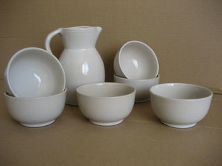 Lot comprenant : - un pichet en grès du Berry ( made in France ) , coloris grisâtre, hauteur : 19 cm, diamètre base : 10,5 cm, diamètre supérieur : 10,3 cm, largeur : 14,5 cm,