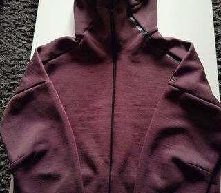 Sweat capuche Adidas coloris prune 2 poches devant à fermeture éclair Hauteur sous aisselles 40 cm Largeur en dessous des bras 52 cm Longueur bras 47 cm