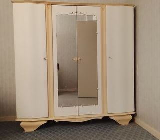 Bonjour, suite à un déménagement, je revends cette armoire qui a été repeinte. Bon état général. La fermeture à clé centrale n'est pas parfaite, mais ferme correctement.