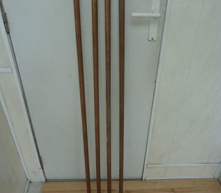 chutes de tuyaux cuivre neuf 4 longueurs de 1.25 m diamètre 22 mm pour installation gaz éventuel 8 colliers atlas avec pattes a vis chevilles 2 coudes équerre cuivre , a soud