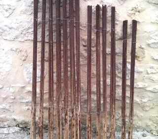 A vendre des tuteurs en acier cranté d'occasion. 20 tuteurs de 1 m. 40 tuteurs de 1,10m. 70 tuteurs de 1,20m. Prix 0.15 € le tuteur. Cordialement.