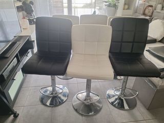 vend lot 6 tabourets de bar 2 noir 4 blanc simili cuir et acier pietement chrome reglable en hauteur pivotant tres bon etat petite marque rien de bien grave pas de livraiso