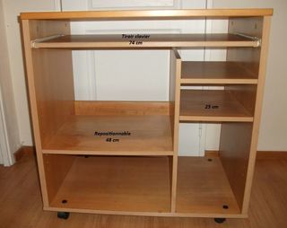 Bureau Alinea sur roulettes. Dimensions : 80 x 50 x 76 cm. Plateau coulissant pour clavier. Etagère inférieure (repositionnable) pour imprimante. Etagère latérale (repositionnable