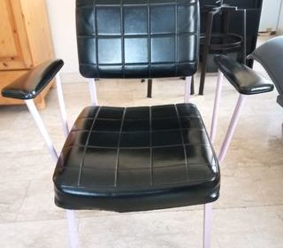 Fautueil noir en simili cuir. Bon état. La peinture des pieds est écaillée par endroits. Mais à part ça, super fauteuil ! À récupérer sur place, à Antony.
