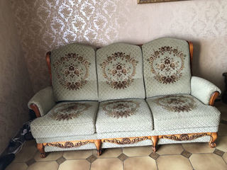 Vends canape style Régence en velours de Gênes vert clair avec des motifs fleuris en relief Structure bois massif merisier, belle qualité , assise et tissu, en très bon état -