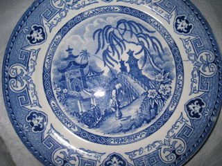 Grande assiette Yeddo Sarreguemines U&C de : 1900 en faïence bleu vif, modèle Japonisant , en mémoire de l'innondation de la ville de Yeddo en 1864. Diamètre : 24,5 cm , en trè