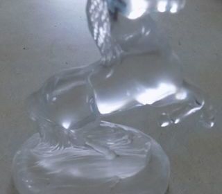Très beau cheval cabré sur une colline en verre transparent 16,5cm de haut