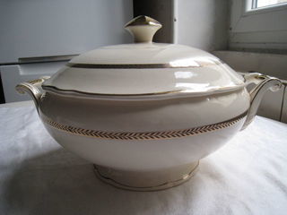Soupière avec couvercle, véritable opaque de Digoin Sarreguemines, vintage année : 1956 , couleur écru , décor à l'or fin , modèle : Turenne . en très bon état . PAS D'ENVOI , paie