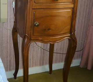 Superbe chevet Style L XV en noyer massif d'époque fin XIXème Beau travail du galbe frontal dans la masse Dessus marbre brun moucheté 1 tiroir galbé 1 porte galbée Sur 4 pied