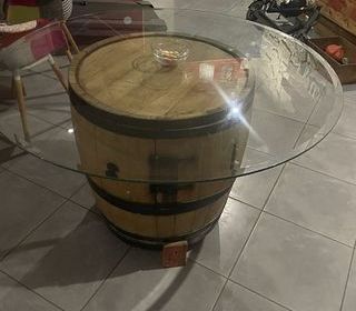 Je vends ma table en tonneau avec plateau en verre trempé 120 cm. Bon état