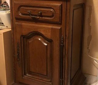 Meuble d'appoint Description Meuble en bois massif fabrication traditionnelle de belle qualité. Finition travaillée (moulures, ferronnerie, poignées d'origine). Un tiroir plus